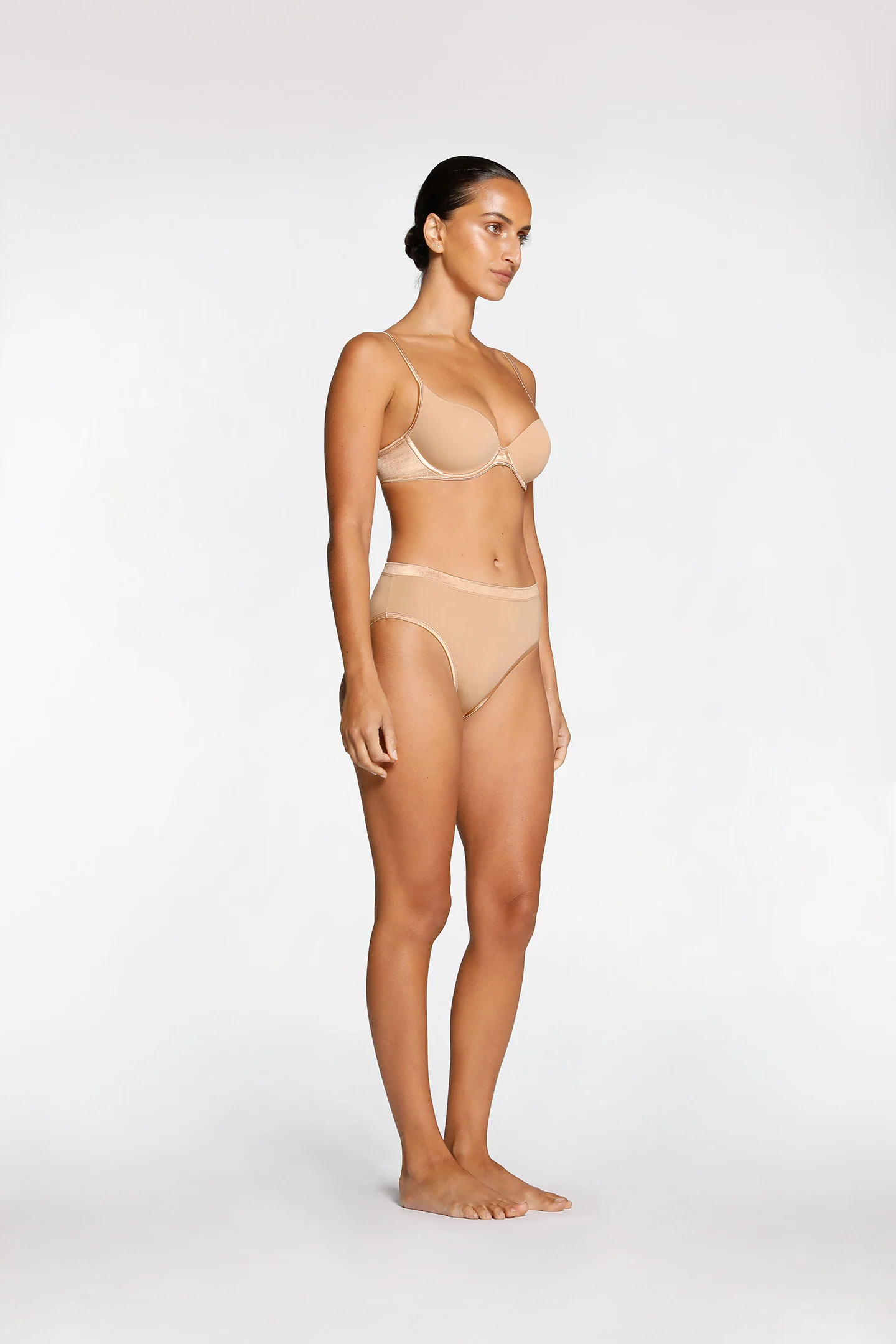 A flexible and lightweight T Shirt Bra designed for all day comfort. Plunging neckline and thin straps allow for easy wear beneath most tops.