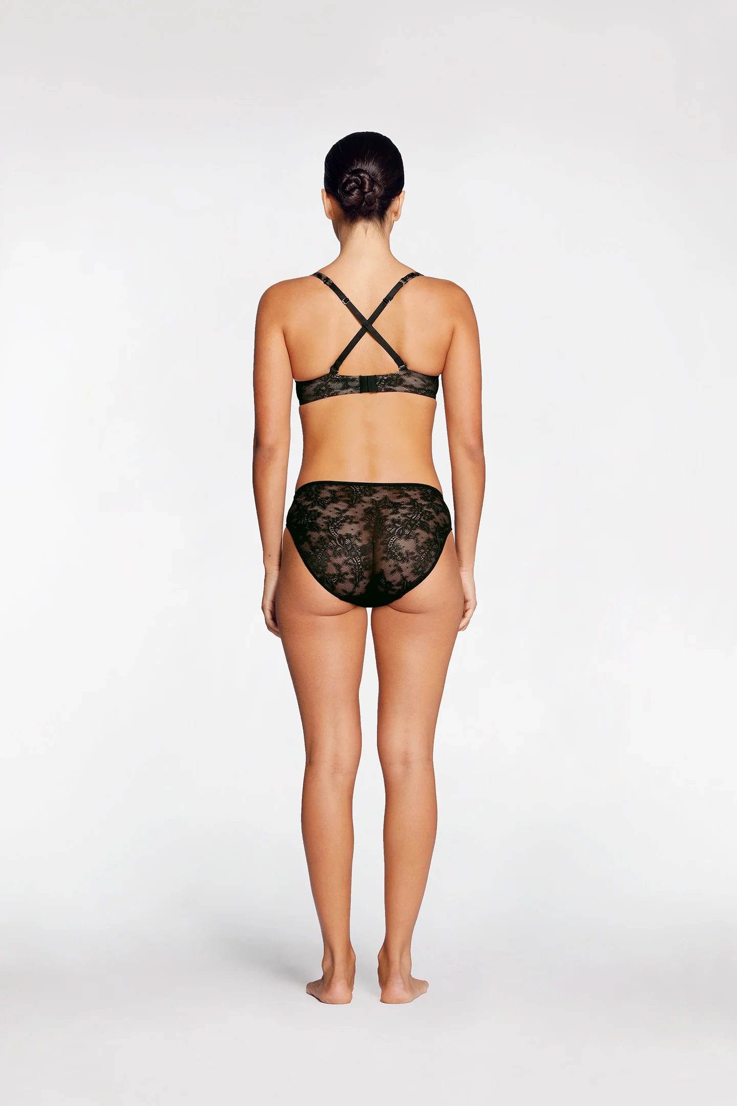 Intimo’s best-selling Essential Plunge T Shirt Bra with all-over stretch lace for invisible wear beneath clothing.
